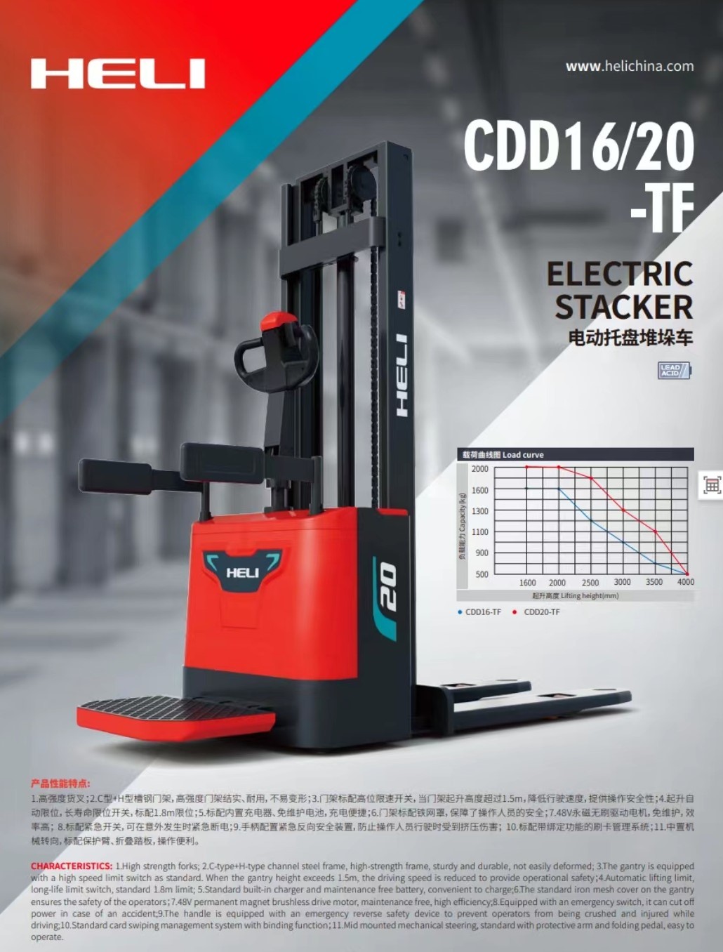 ●標配CURTIS系列控制器,可靠、耐用;AMP防水防塵插件,給予線路可靠保護,大大降低了電器故障;